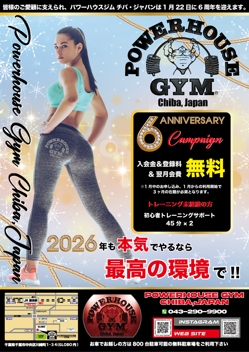 パワーハウスジム チバ・ジャパンは6周年を迎えます。 皆様のご愛顧に心より感謝申し上げます。 パワーハウスジムは、2026年1月22日をもちまして6周年を迎え ...